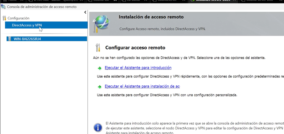 a. Dentro de Configuración, en DirectAccess y VPN, ejecutamos el asistente para la instalación.