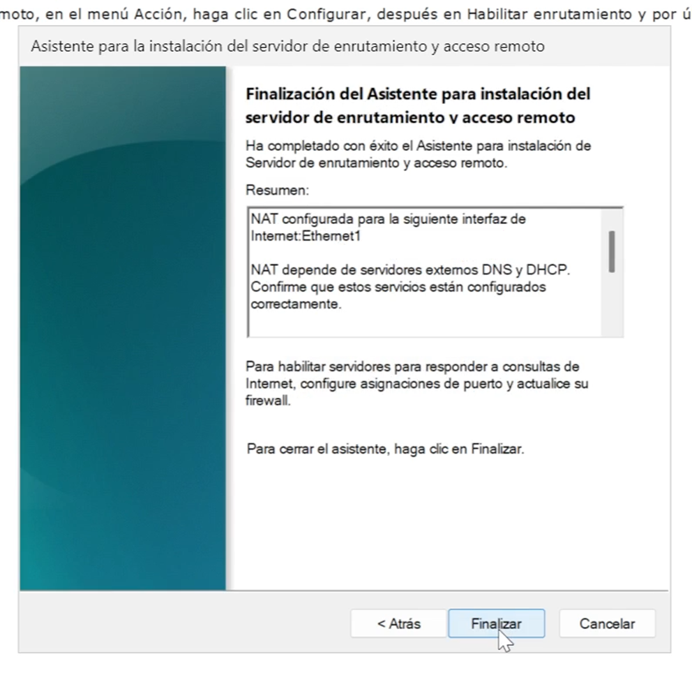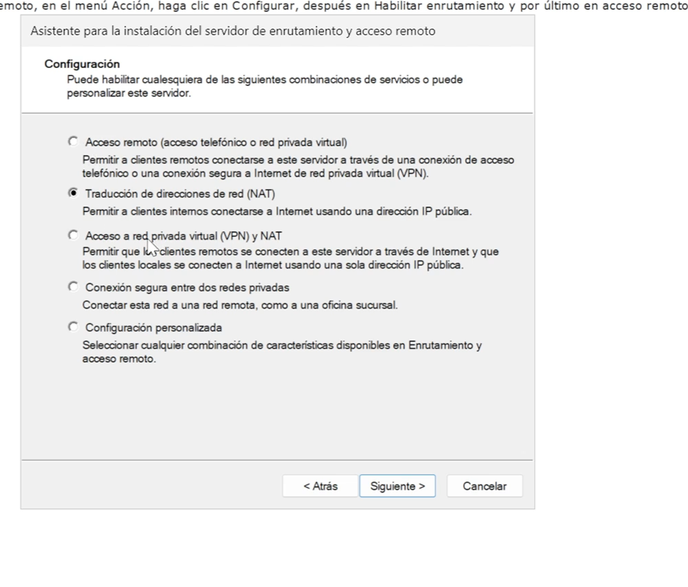 c. Despues de darle a configurar, se nos abre el asistente, en este seleccionamos Traduccion de direcciones de red.