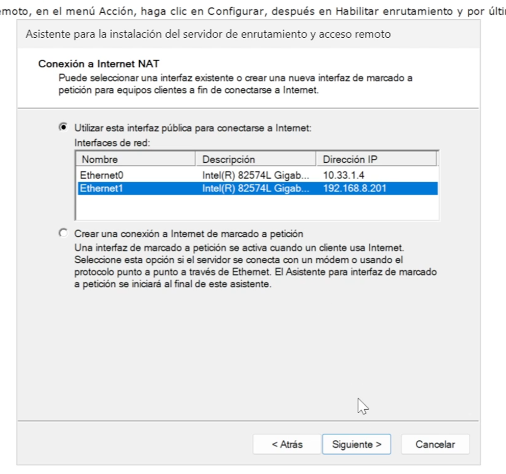 d.Despues se nos pediré que indiquemos nuestra interfaz con salida a internet.