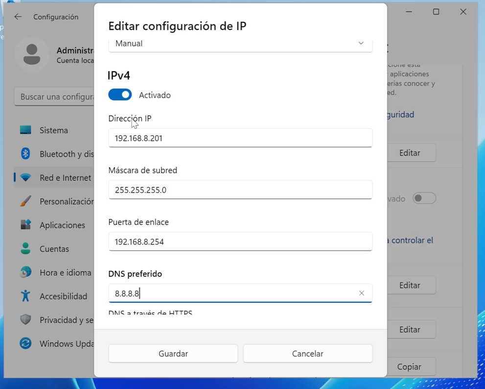 1.Configuramos nuestra nueva interfaz de forma manual.
