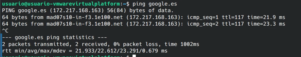 4.Comprobamos que un equipo que esta en la red privada, es capaz de salir a internet si le indicamos el windows server como puerta de enlace. -- Configuracion del equipo: Hacemos ping a Google para comprobar: