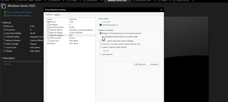 Añadimos una interfaz puente en nuestra maquina virtual.
